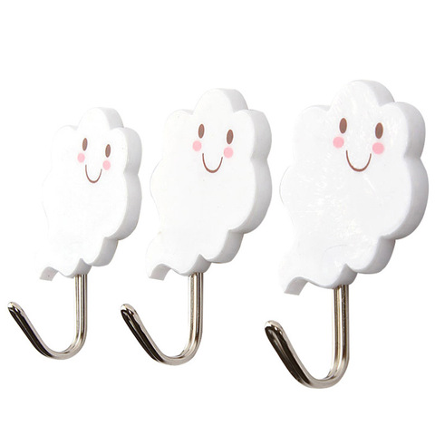 LTT1740 उच्च गुणवत्ता 3Pcs/पैक सफेद बादलों मजबूत चिपकने वाला हुक रसोई घर की दीवार रैक प्लास्टिक दीवार हुक