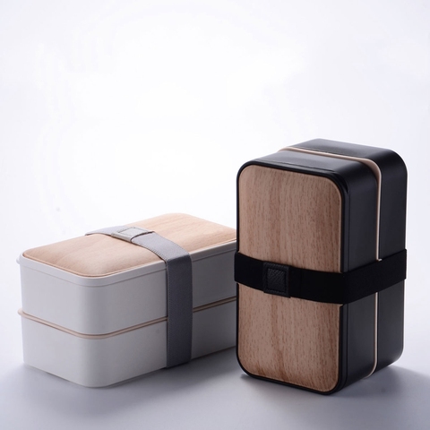WS163 סיטונאי מותאם אישית לוגו עמיד בנטו תיבה בצבע עץ יפני כפול בידוד קופסא ארוחת הצהריים תלמיד נייד תיבת הצהריים במשרד